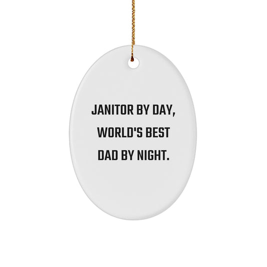 Janitor Gifts by Day, Oval Ornament by Night for Men, Funny Janitor Quotes, Christmas Unique Gifts from Friends to Family