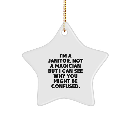 Janitor Gifts from Friends, Funny Star Ornament for Janitor, 'I'm A Janitor. Not A Magician...'