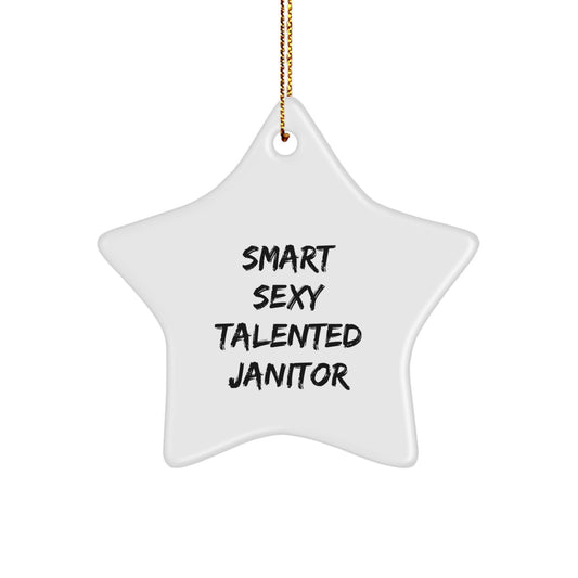 Smart Sexy Talented Janitor Gifts for Men - Funny Christmas Star Ornament from Friends for Janitors with Quote