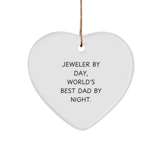 Jeweler Gifts, Funny Quote Heart Ornament for Men, Women, Family, Friends - 'Jeweler By Day, World's Best Dad By Night.'