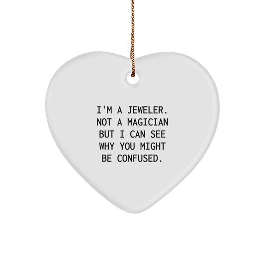 Jeweler's Heartfelt Gift, Funny Quote, White Heart Ornament for Christmas, Gifts from Men to Jeweler Friends