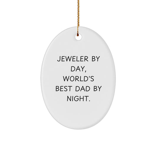 Jeweler Gifts by Day, World's Best Dad by Night - Oval Ornament, Funny Quote, Christmas Unique Gifts from Men