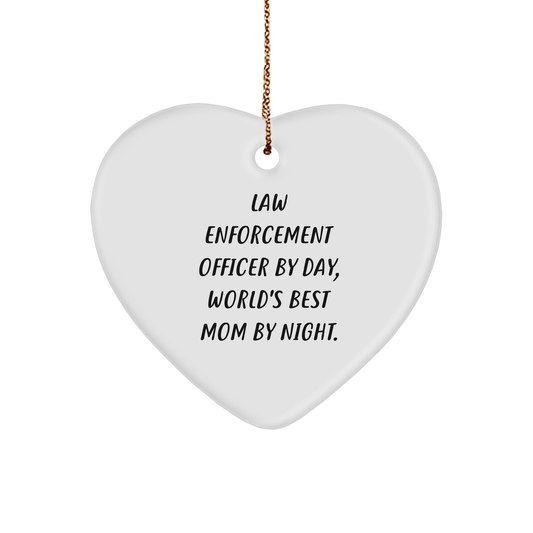Funny Law Enforcement Officer Gifts from Mom - Heart Ornament, 'By Day, World's Best Mom By Night.' - Unique Christmas Unique Gifts for Law Enforcement Officers