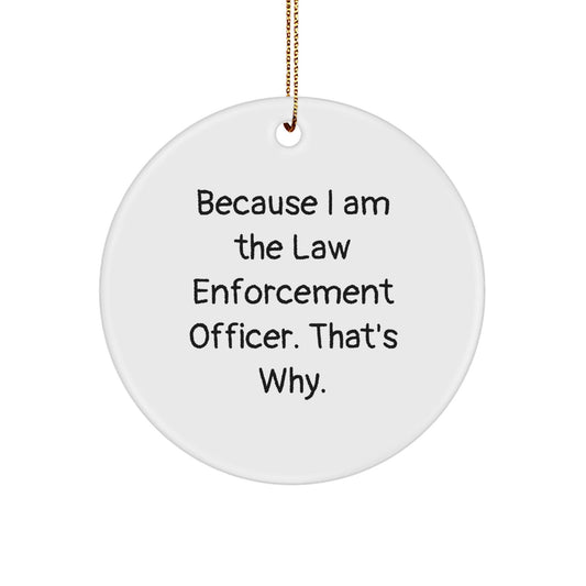 Funny Law Enforcement Officer Gifts from Men to Law Enforcement Officer Friends - 'Because I Am The Law Enforcement Officer. That's Why.' Circle Ornament, Christmas Unique Presents