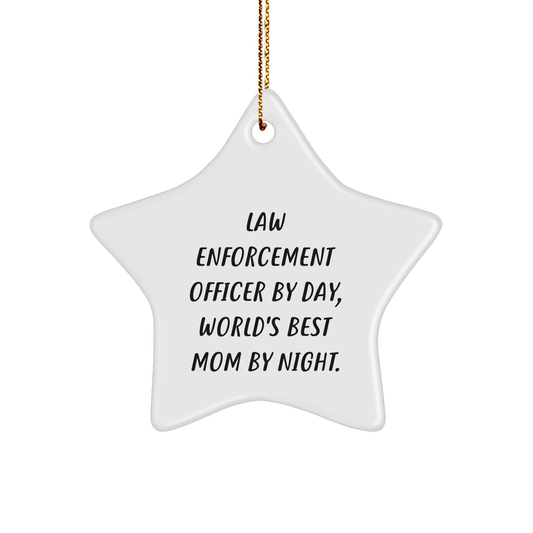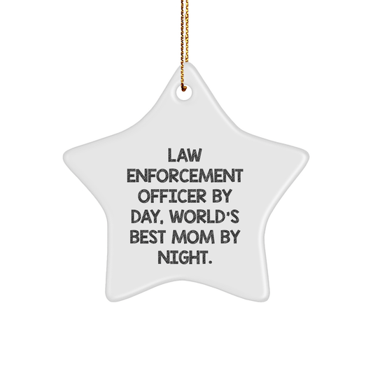Law Enforcement Officer Gifts, Star Ornament, Funny Quote, 'By Day, World's Best Mom By Night.', Christmas Unique Gifts for Men, Women, Family, Friends, Coworkers