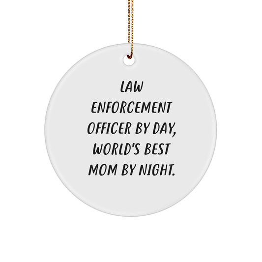 Law Enforcement Officer Gifts from Friends, Family - Circle Ornament, 'By Day, World's Best Mom By Night.' - Unique Christmas Unique Gifts for Her