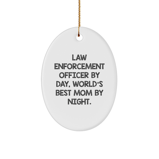Law Enforcement Officer Gifts from Friends, Family - Funny Oval Ornament, White, Christmas Unique Gifts for Law Enforcement Officer By Day, World's Best Mom By Night.