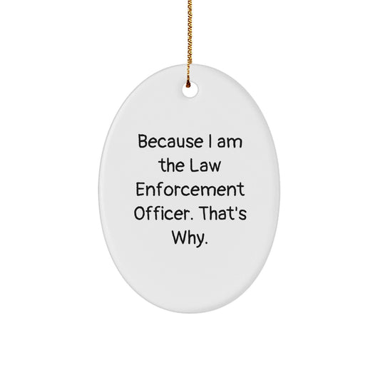 Law Enforcement Officer Oval Ornament Gifts from Friends and Family - Because I Am The Law Enforcement Officer. That's Why. - White Oval Ornament for Men and Women