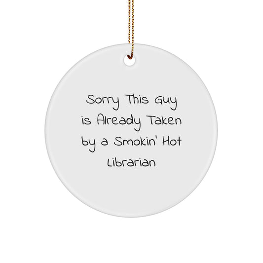 Librarian Gifts, Sorry This Guy Is Already Taken by a Smokin' Hot Librarian, Circle Ornament for Christmas