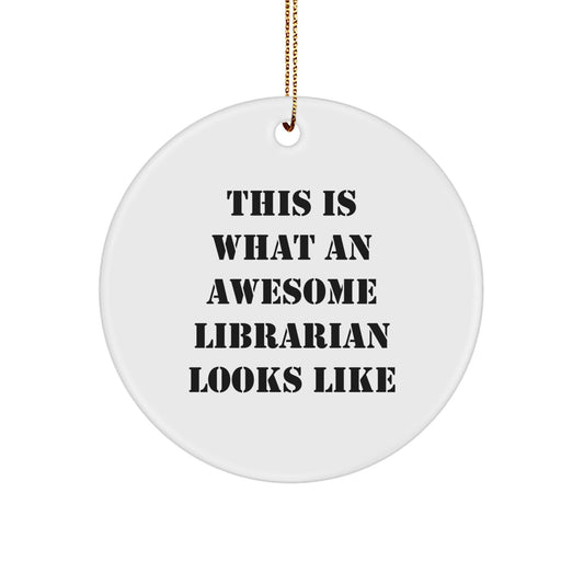 Funny Librarian Gifts from Friends, This Is What Awesome Librarian Looks Like Circle Ornament for Librarian, Christmas Unique Gifts