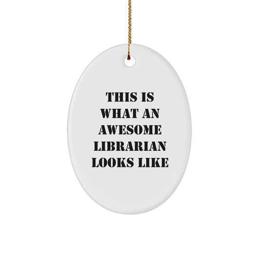 Librarian Gifts, This Is What An Awesome Librarian Looks Like Oval Ornament, Christmas Unique Gifts from Friends to Family