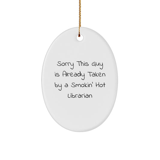 Librarian Gifts from Friends for Christmas - Sorry This Guy Is Already Taken By A Smokin' Hot Librarian Oval Ornament