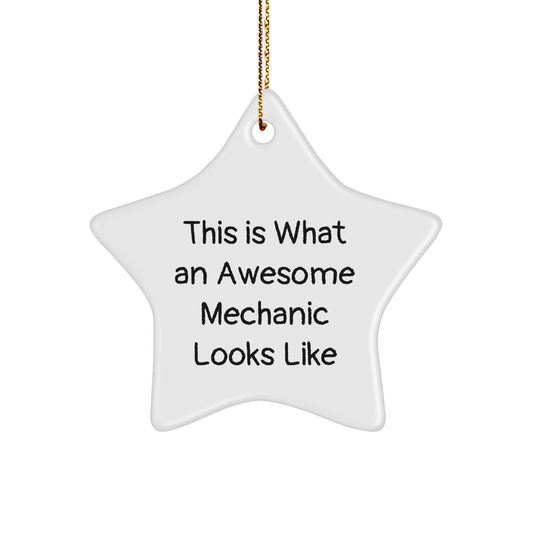 Mechanic Gifts from Friends - Christmas Star Ornament with Quote 'This Is What An Awesome Mechanic Looks Like' - Unique Gifts for Mechanic Men or Women