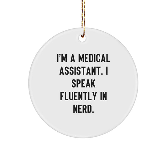 Medical Assistant Gifts - Circle Ornament with Funny Quote, 'I'm A Medical Assistant. I Speak Fluently In genius.' - Christmas Unique Gifts for Medical Assistant Friends, Family, or Coworkers