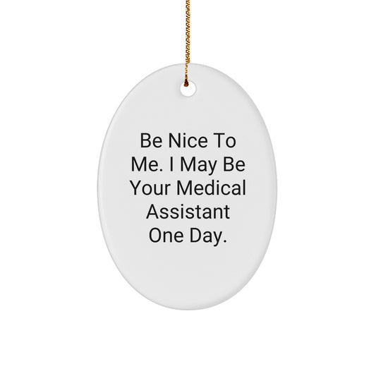 Funny Medical Assistant Gifts, Oval Ornament, Quote: 'Be Nice To Me'