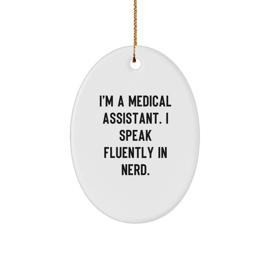 Medical Assistant Gifts, I'm A Medical Assistant. I Speak Fluently In genius., Oval Ornament for Christmas, Gifts from Men to Medical Assistant, Gifts for Medical Assistant