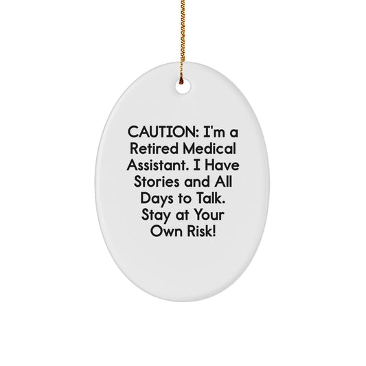 Medical Assistant Gifts from Friends: 'Caution: I'm A Retired Medical Assistant... Stay At Your Own Risk!' Oval Ornament for Christmas
