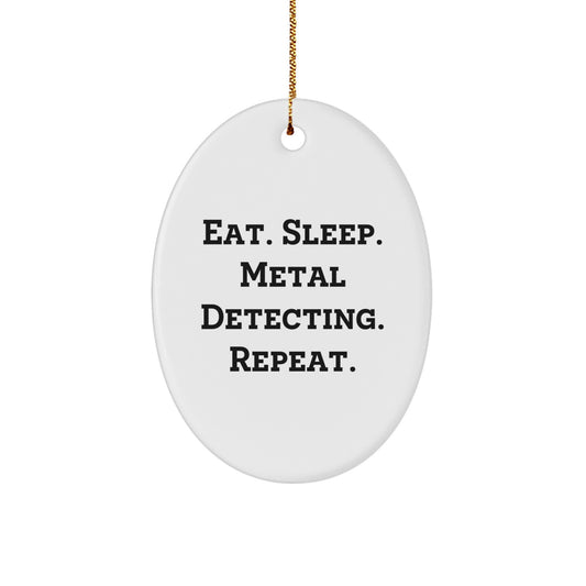 Eat. Sleep. Metal Detecting. Repeat. Oval Ornament Gifts for Metal Detecting Enthusiasts - Funny Quote Christmas Unique Gift for Men, Women, Friends, or Family from Metal Detecting Lovers