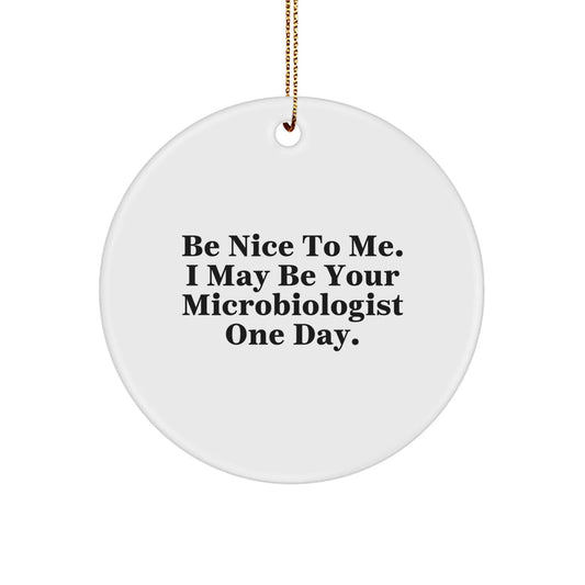 Funny Microbiologist Gifts from Family, Friends or Coworkers - 'Be Nice To Me' Circle Ornament for Men, Women, and Kids - Unique Christmas Unique Gifts