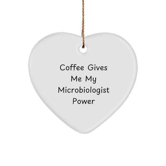Funny Microbiologist Gifts from Friends for Him - Coffee Gives Me My Microbiologist Power Christmas Heart Ornament, Unique Microbiologist Presents for Men