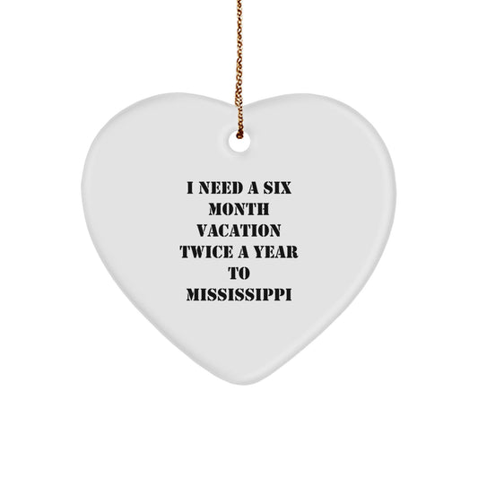 Funny Mississippi Gifts from Friends for Heart Ornament - I Need a Six Month Vacation Twice a Year to Mississippi, Mississippi Love, Christmas Unique Gifts