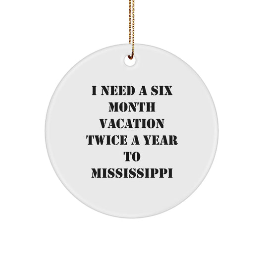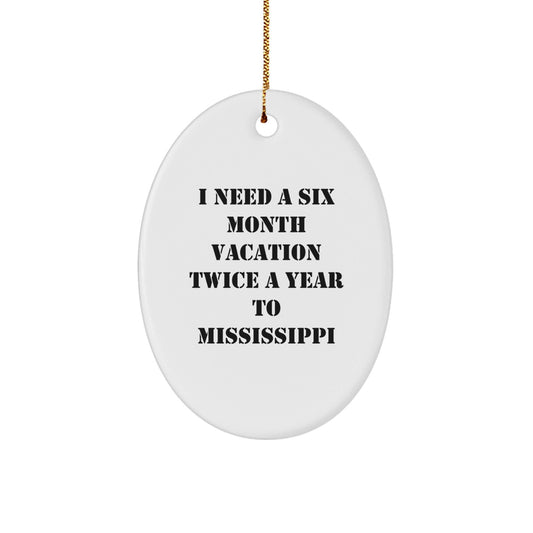 Mississippi Oval Ornament Gifts - 'I Need A Six Month Vacation Twice A Year To Mississippi' - Unique Christmas Unique Gifts for Mississippi Lovers