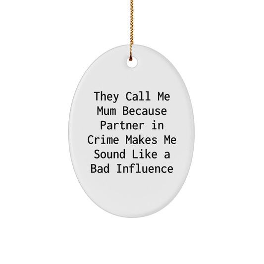 Funny Mum Gifts from Men to Mum, Oval Ornament with Christmas Quote, 'They Call Me Mum Because Partner In Crime Makes Me Sound Like A Bad Influence', Gifts for Mum on Christmas