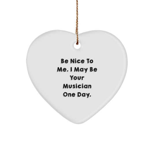 Funny Musician Gifts from Friends - Be Nice To Me. I May Be Your Musician One Day. Heart Ornament, Gifts for Musician, Christmas Unique