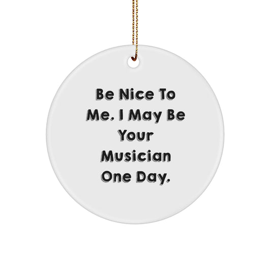 Funny Musician Gifts from Friends for Christmas - Be Nice To Me. I May Be Your Musician One Day. Circle Ornament