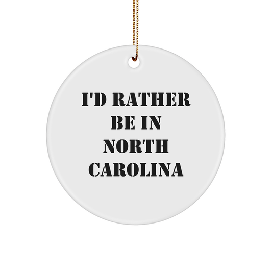 Funny North Carolina Gifts: I'd Rather Be In North Carolina Circle Ornament, Perfect for Women, Friends, and Family, North Carolina Christmas Unique Gifts from Us, Gifts for North Carolina Lovers