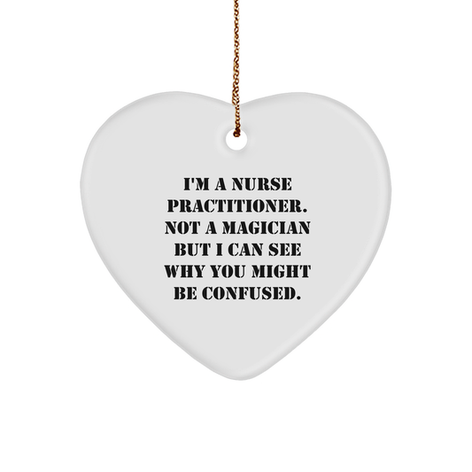 Nurse Practitioner Gifts from Family - I'm A Nurse Practitioner. Not A Magician But I Can See Why You Might Be Confused. Heart Ornament for Christmas