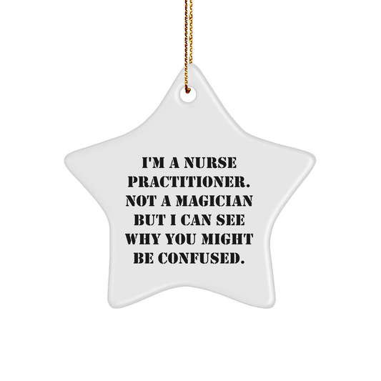 Nurse Practitioner Gifts from Men, Unique Star Ornament for Nurse Practitioner, Funny Quote, 'I'm A Nurse Practitioner. Not A Magician But I Can See Why You Might Be Confused.'