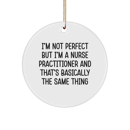 Funny Nurse Practitioner Quotes Circle Ornament Gifts from Friends to Nurse Practitioner, 'I'm Not Perfect But I'm A Nurse Practitioner And That's Basically The Same Thing' Christmas Unique Gifts
