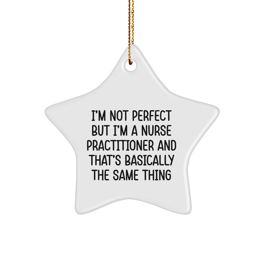 Funny Nurse Practitioner Star Ornament Gifts from Friends, Coworkers, or Family - I'm Not Perfect, But I'm A Nurse Practitioner, And That's Basically The Same Thing - Christmas Unique Gifts for Her