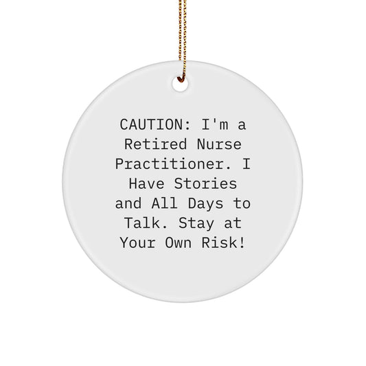 Nurse Practitioner Gifts from Friends - 'Caution: I'm A Retired Nurse Practitioner...' Circle Ornament for Christmas