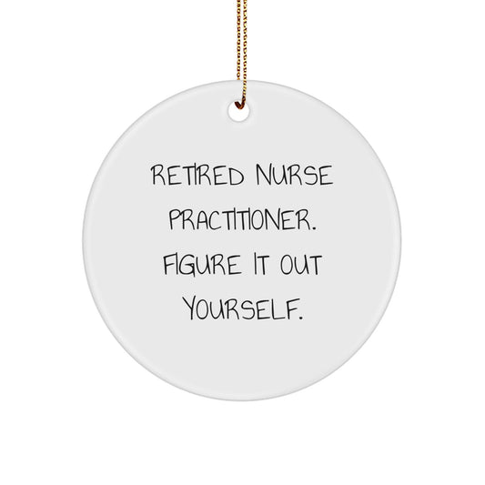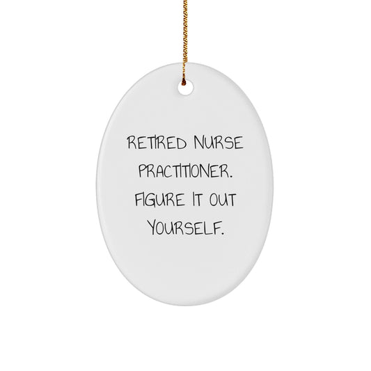 Nurse Practitioner Gifts from Friends, Christmas Unique Oval Ornament with Funny Quote, 'Retired Nurse Practitioner. Figure It Out Yourself.' for Nurse Practitioner