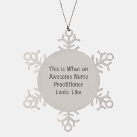 Funny Nurse Practitioner Gifts from Friends, Snowflake Ornament Quote, Unique Christmas Memorable Presents for Nurse Practitioner, Durable Stainless Steel, Shatterproof, 3.14 inches