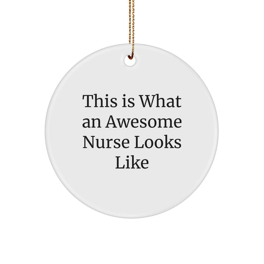 Gifts from Friends for Awesome Nurses - Christmas Circle Ornament with Quote 'This Is What An Awesome Nurse Looks Like' - Unique Nurse Gifts
