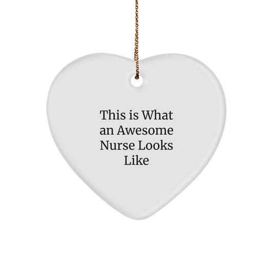 Funny Nurse Gifts from Friends for Awesome Nurses, This Is What An Awesome Nurse Looks Like Heart Ornament, Christmas Unique Gifts