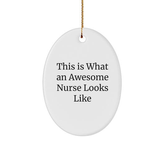 Nurse Gifts for Christmas: 'This Is What An Awesome Nurse Looks Like' Oval Ornament from Friends and Family