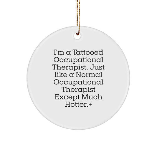 Funny Occupational Therapist Gifts for Men, Women, Friends, Coworkers, Family - 'I'm A Tattooed Occupational Therapist' Circle Ornament, White, 2.75" Tall, Christmas Unique Presents