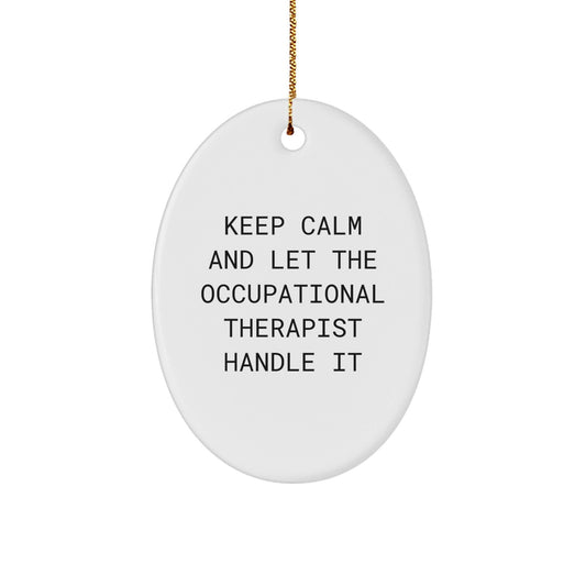 Funny Occupational Therapist Gifts from Friends for Christmas Unique Oval Ornament 'Keep Calm And Let The Occupational Therapist Handle It'