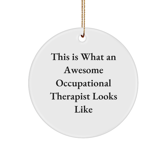 Occupational Therapist Gifts from Friends, Family, or Coworkers - 'This Is What An Awesome Occupational Therapist Looks Like' Christmas Circle Ornament, White, 2.75'' Tall