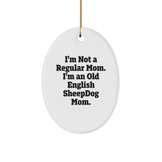 Old English SheepDog Mom Gifts from Family for Christmas Unique Circle Ornaments, 'I'm Not A Regular Mom. I'm An Old English Sheepdog Mom.'