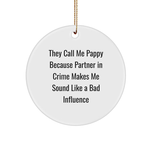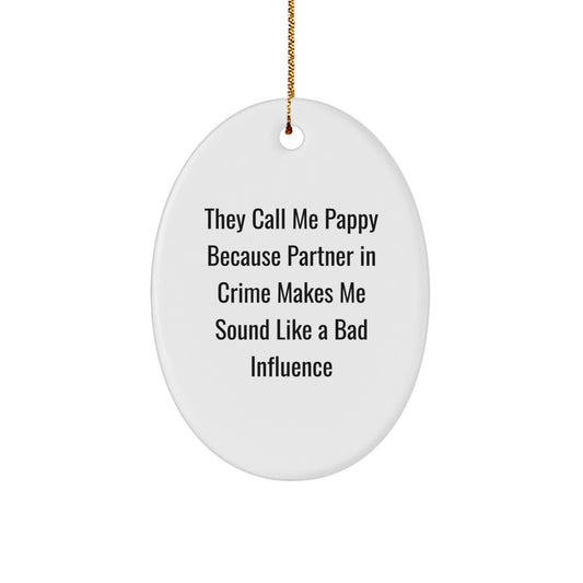 Pappy Gifts, Funny Oval Ornament, 'They Call Me Pappy Because Partner In Crime Makes Me Sound Like A Bad Influence' for Men, Women, Friends, Coworkers, Family - Christmas Unique Gifts