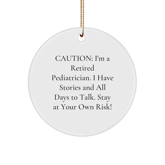 Funny Pediatrician Gifts for Men, 'Caution: I'm A Retired Pediatrician...' Circle Ornament, Handcrafted for Christmas