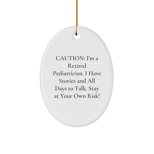 Funny Pediatrician Gifts from Friends, Family - 'Caution: I'm A Retired Pediatrician...' Oval Ornament for Christmas