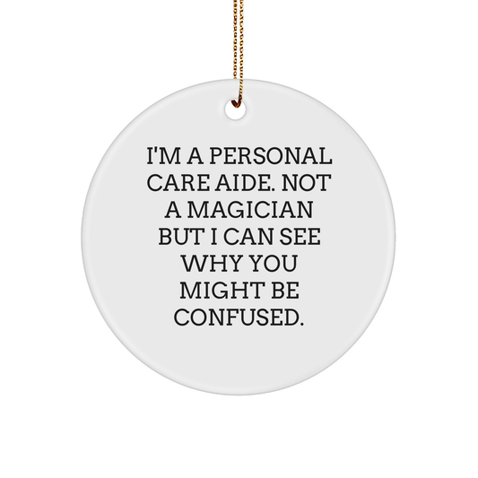 Personal Care Aide Gifts from Friends, Christmas Circle Ornament with Funny Quote, 'I'm Not a Magician...'