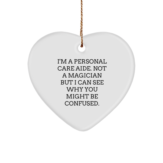 Funny Personal Care Aide Gifts, I'm A Personal Care Aide. Not A Magician, Heart Ornament for Christmas, Gifts from Family to Personal Care Aide