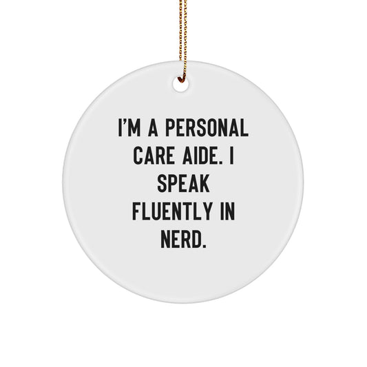 Fun Personal Care Aide Gifts from Friends, Coworkers, Family - 'I'm A Personal Care Aide. I Speak Fluently In genius.' Christmas Circle Ornament